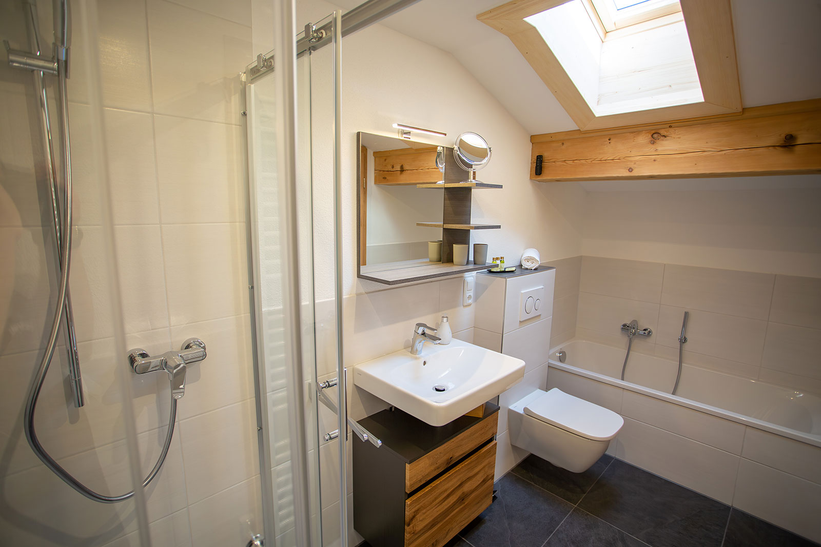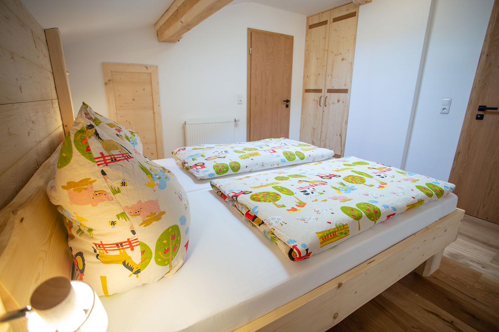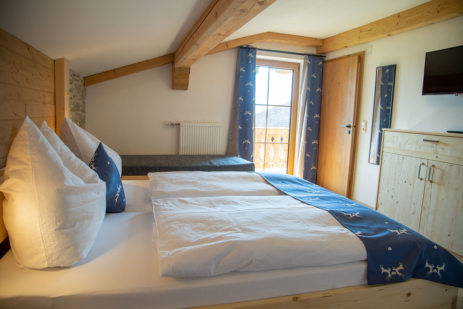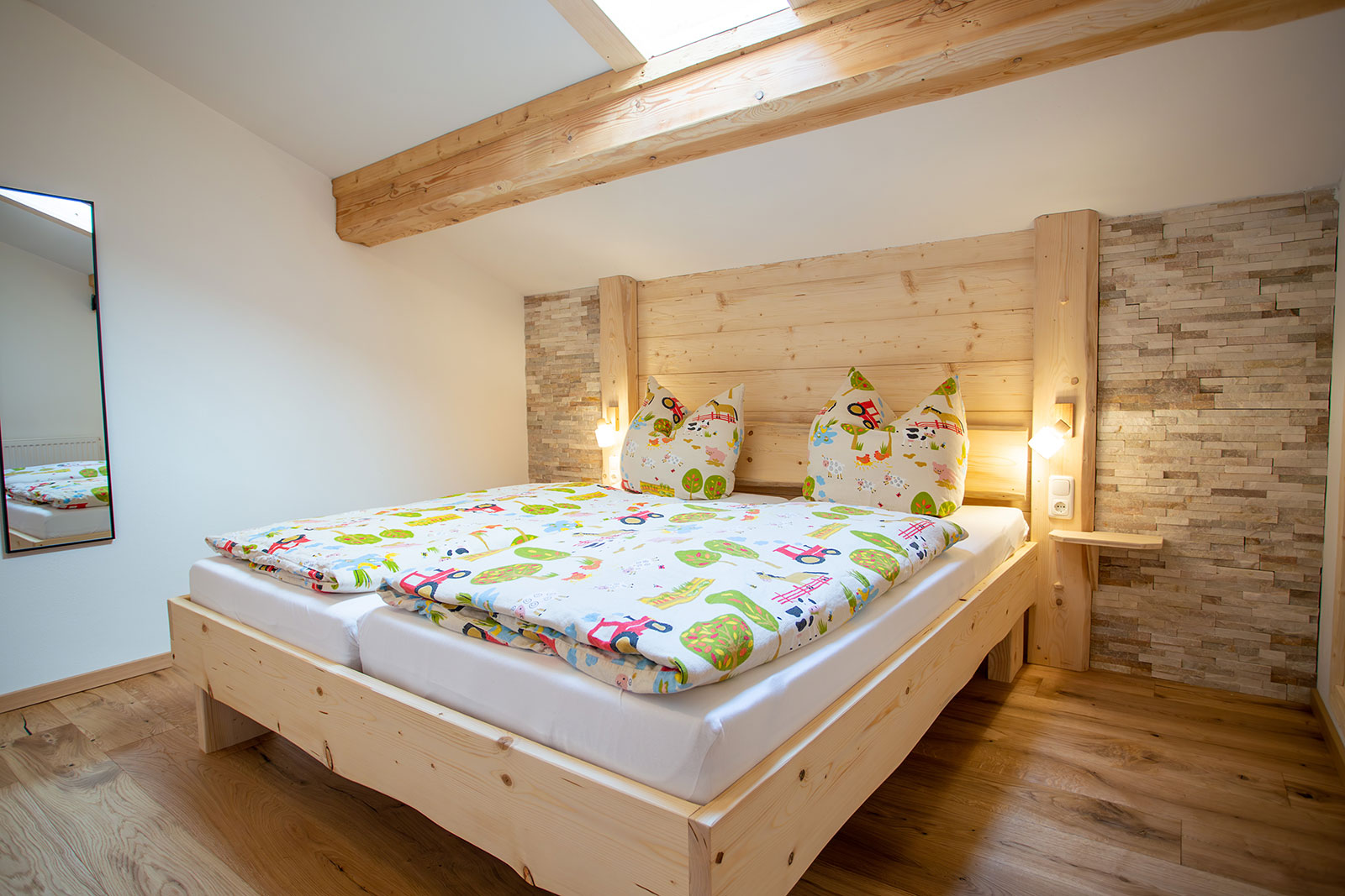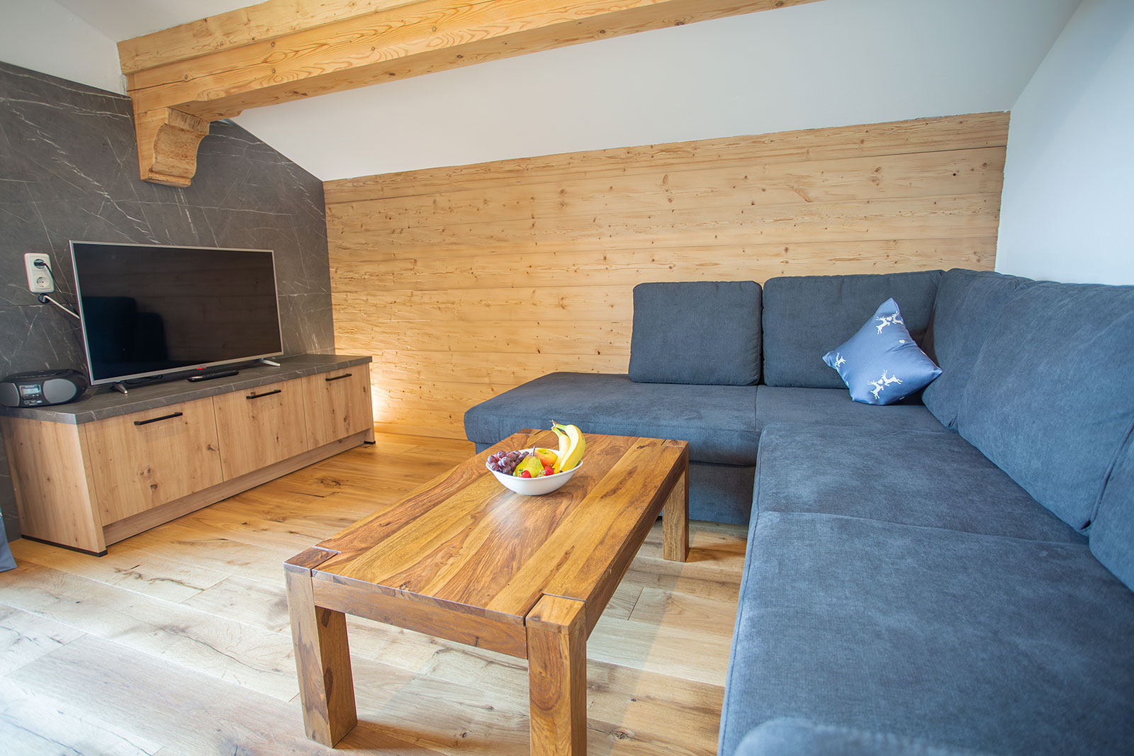 Unsere Ferienwohnung "Gamsknogel" im 2. Stock (Dachgeschoss) verfügt über eine Größe von ca. 70 Quadratmeter und bietet bequem Platz für 1-5 Personen. Zusätzlich 2 Kinder auf der Ausziehcouch bei Bedarf. Die Wohnung ist mit 2 Schlafzimmer mit je einem Bad ausgestattet. Das zweite Schlafzimmer kann wahlweise als Schlafzimmer für Erwachsene oder als Kinderzimmer genutzt werden.