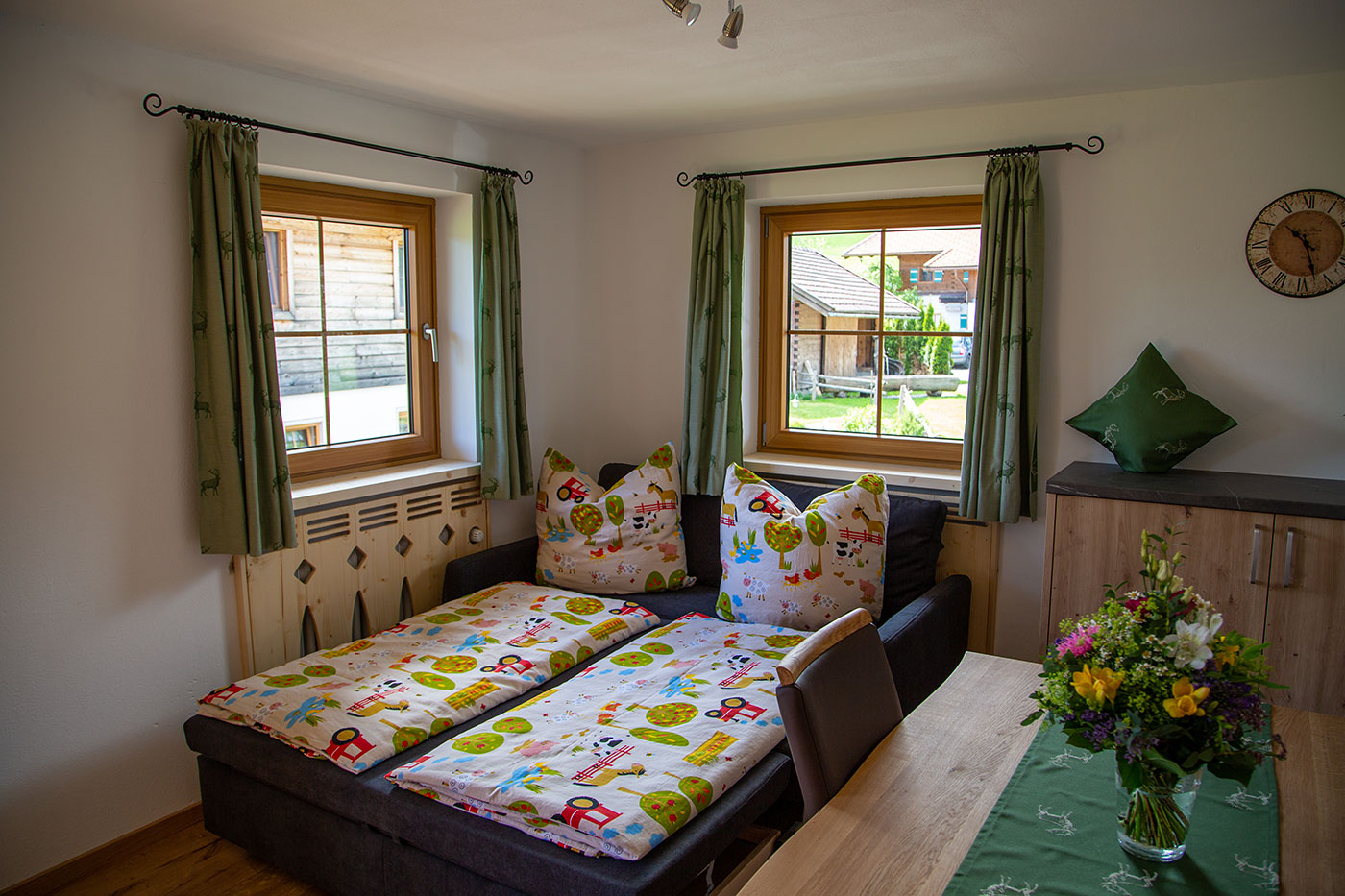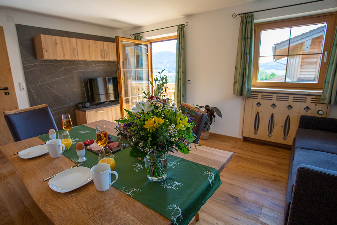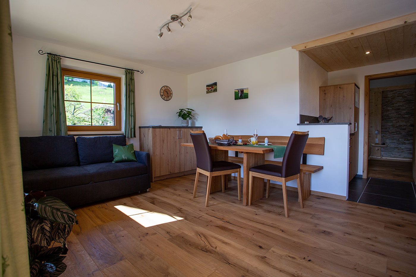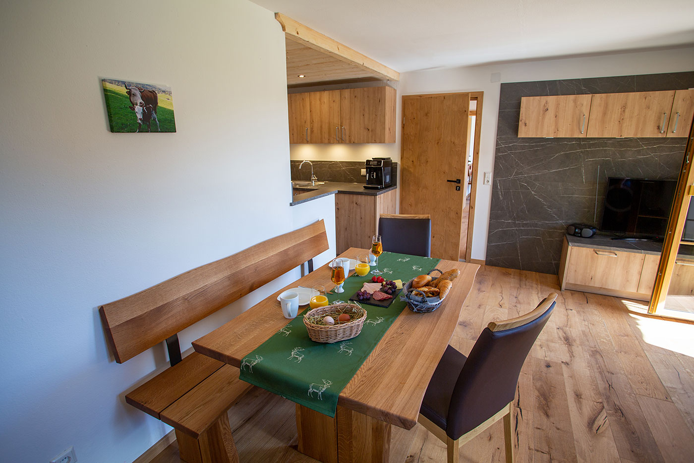 Unsere Ferienwohnung "Kienberg" verfügt über eine Größe von ca. 50 Quadratmeter und bietet bequem Platz für 2-4 Personen, Wohn-Essbereich mit ausziehbarer Schlafcouch, Küche, 1 Schlafzimmer, Dusche/WC, großzügiger Süd-Ost-Balkon, Geschirrspüler, Kaffeevollautomat, Mikrowelle, SAT-TV und WLAN.