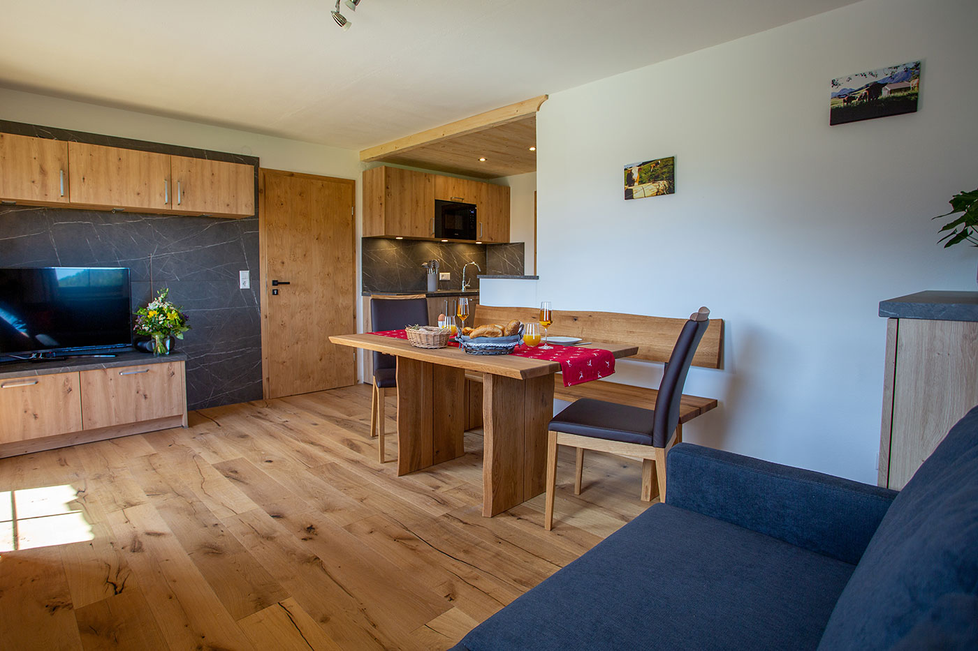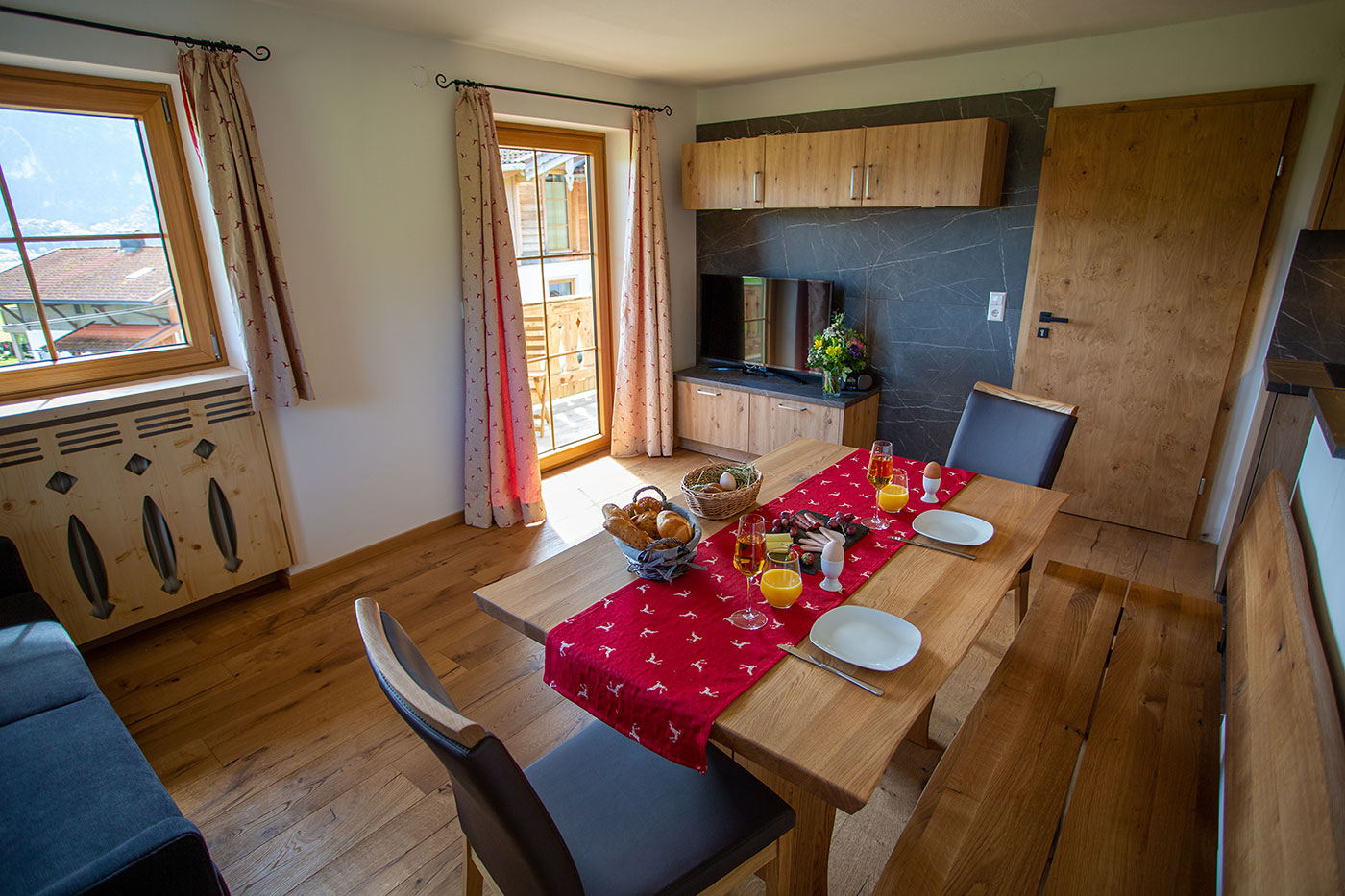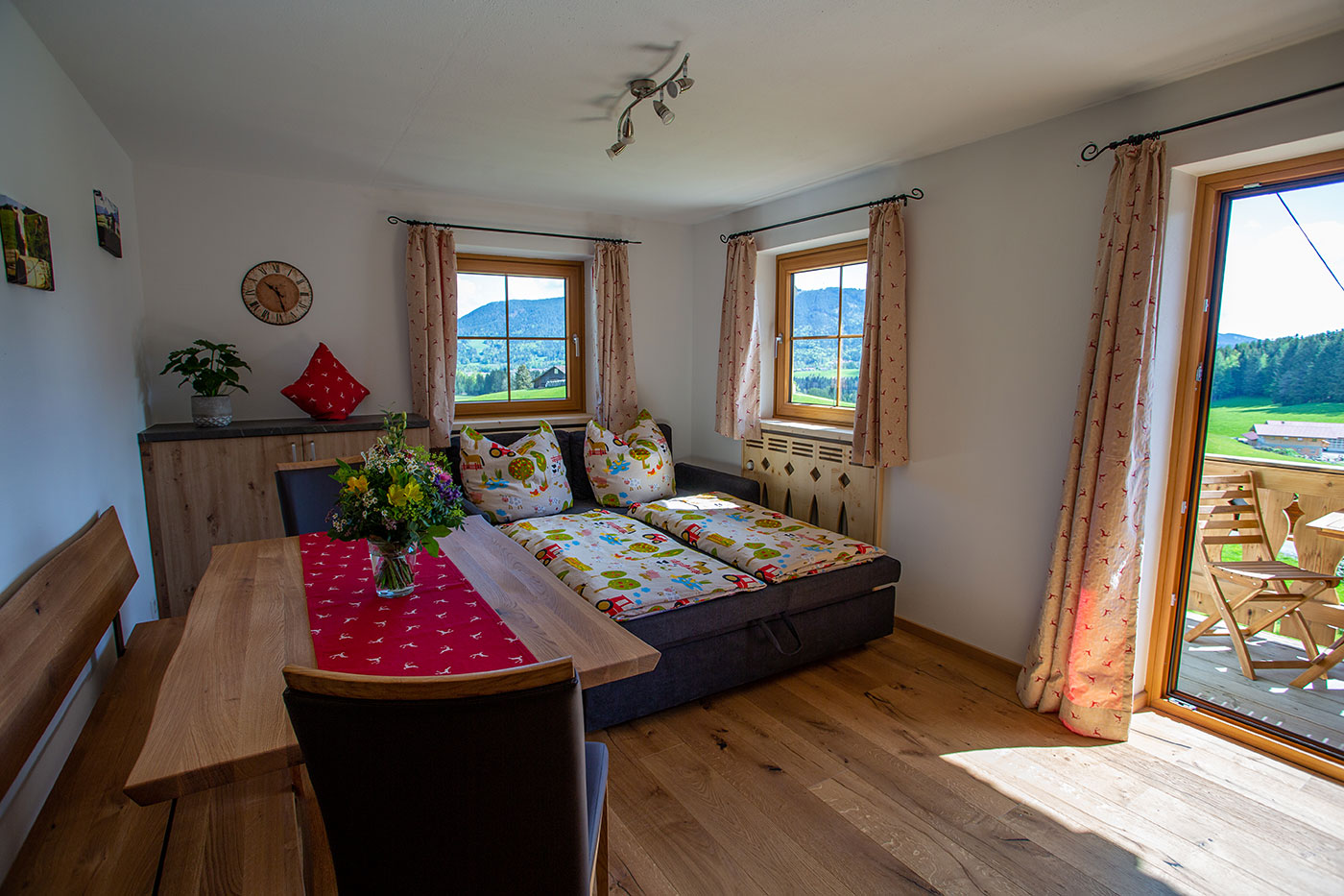 Unsere Ferienwohnung "Zinnkopf" verfügt über eine Größe von ca. 50 Quadratmeter und bietet bequem Platz für 2-4 Personen, Wohn-Essbereich mit ausziehbarer Schlafcouch, Küche, 1 Schlafzimmer mit Kinderbett, Dusche/WC, großzügiger Nord-Ost-Balkon, Geschirrspüler, Kaffeevollautomat, Mikrowelle, SAT-TV und WLAN.