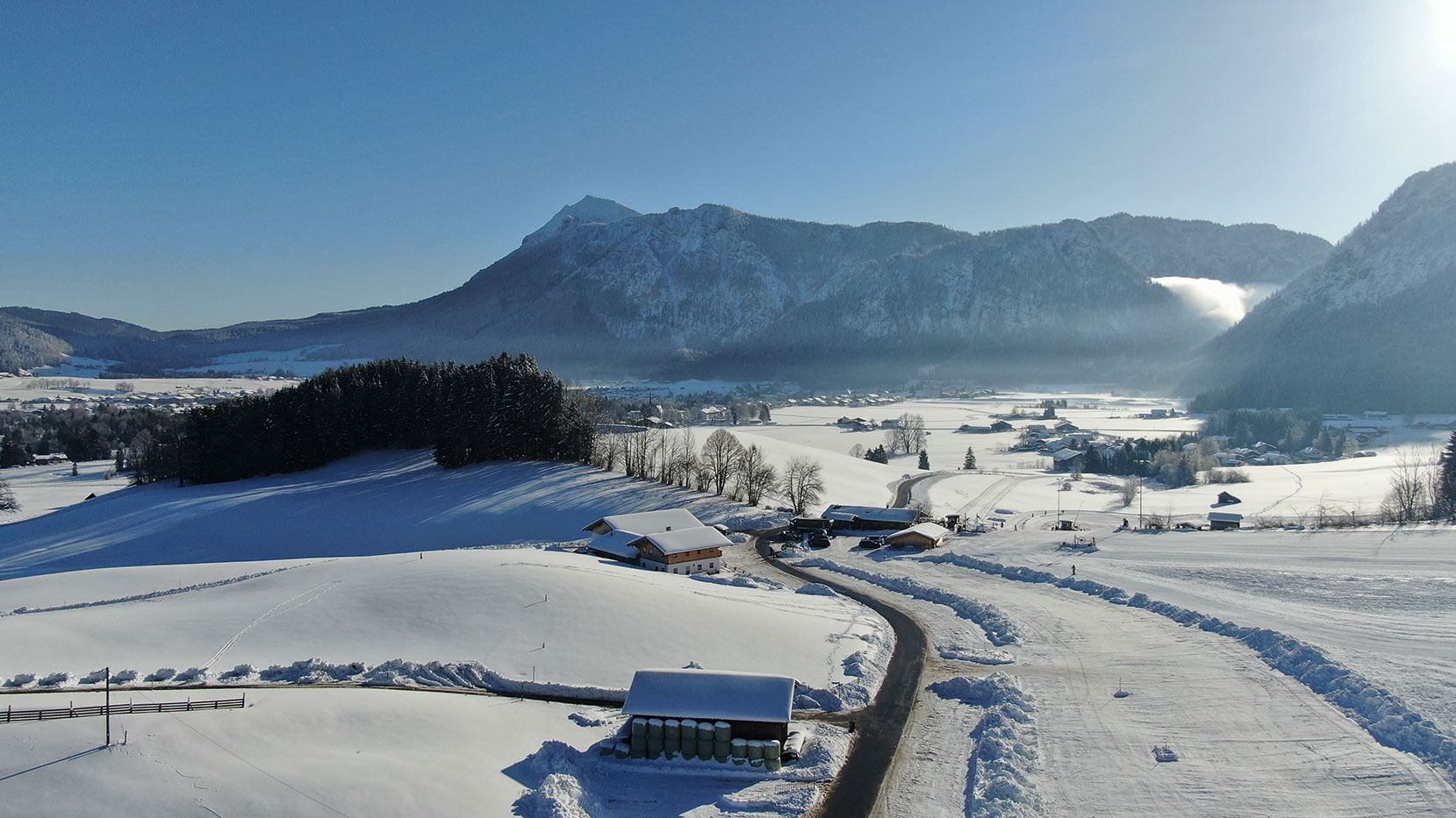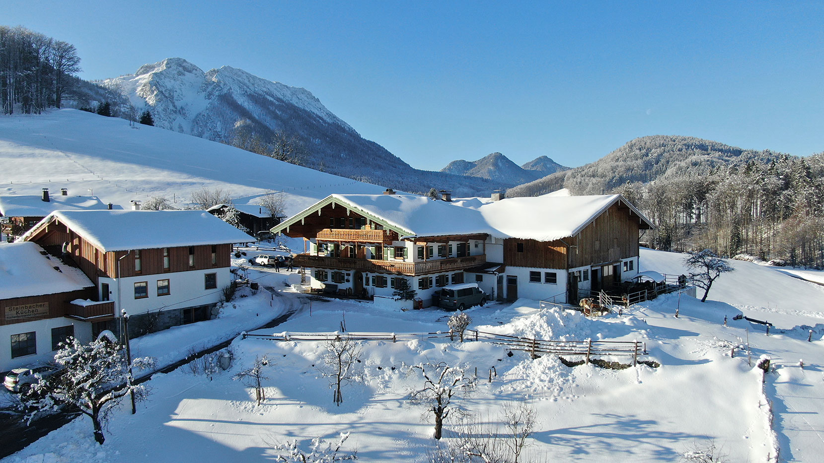 Bei der Familie Julia und Stefan Steinbacher im Inzeller Ortsteil Ramsen. Unser aktiv bewirtschafteter Bauernhof arbeitet nach den Bio-Richtlinien und befindet sich in traumhafter Lage ca. 2,5 Kilometer außerhalb des Ortes mit vielen Wandermöglichkeiten, wundervollem Panoramablick auf Inzell und die Berge.